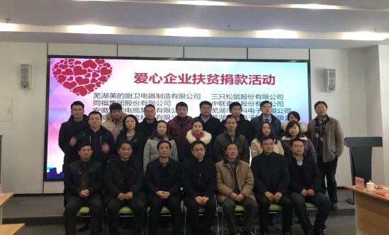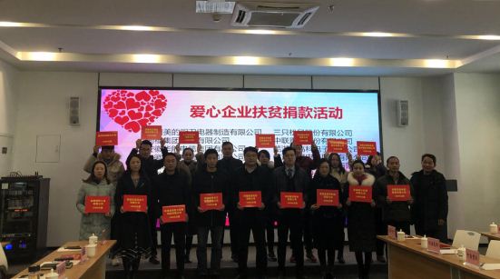 會上,舉行了愛心企業(yè)代表向貧困村的集體捐贈儀式。