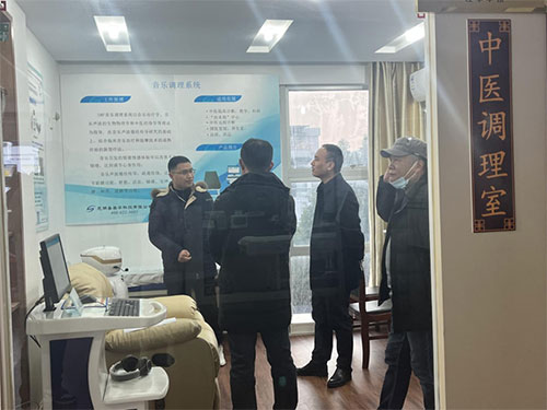 隨后章主任一行來到我司中醫(yī)調理室,并饒有興致的聽取工作人員介紹中醫(yī)調理室的成立背景、各模塊組成及工作原理、項目實施及落地情況,在工作人員演示完中醫(yī)音樂調理系統(tǒng)之后,對公司將中醫(yī)理論與人工智能融合表示高度贊賞,并鼓勵企業(yè)加大宣傳推廣力度。